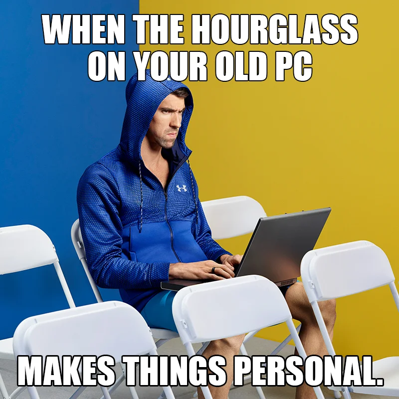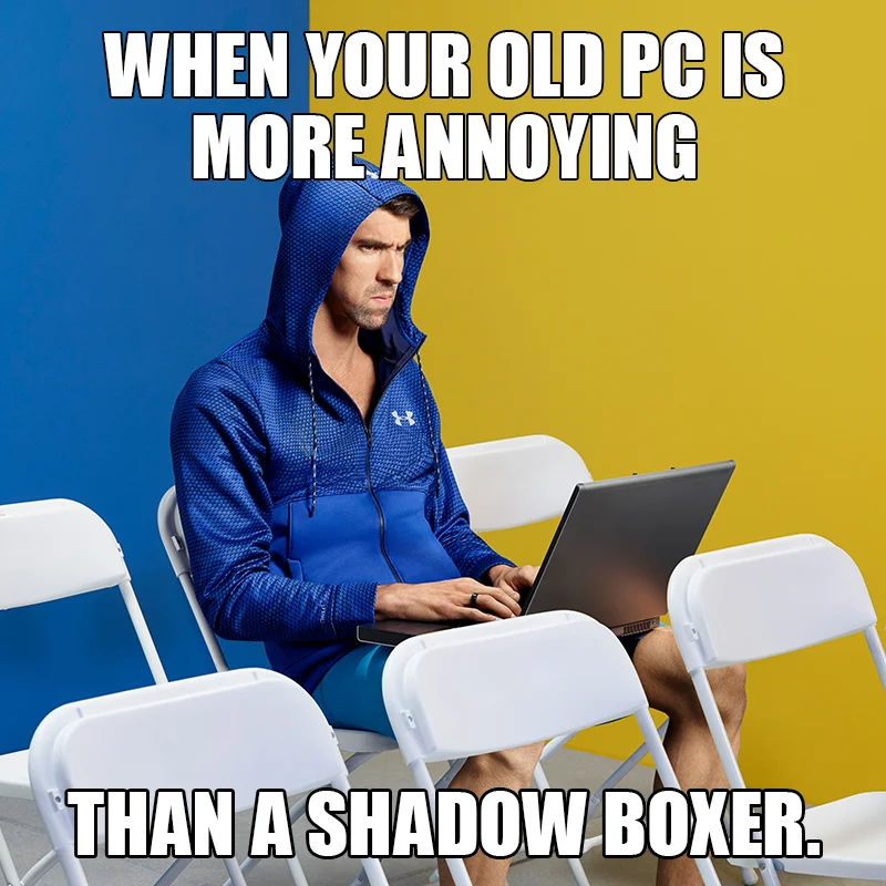 We recreated the PhelpsFace meme to show the face you make when using an old PC. Specifically, the face the world's fastest swimmer makes when he uses the world's slowest computer.